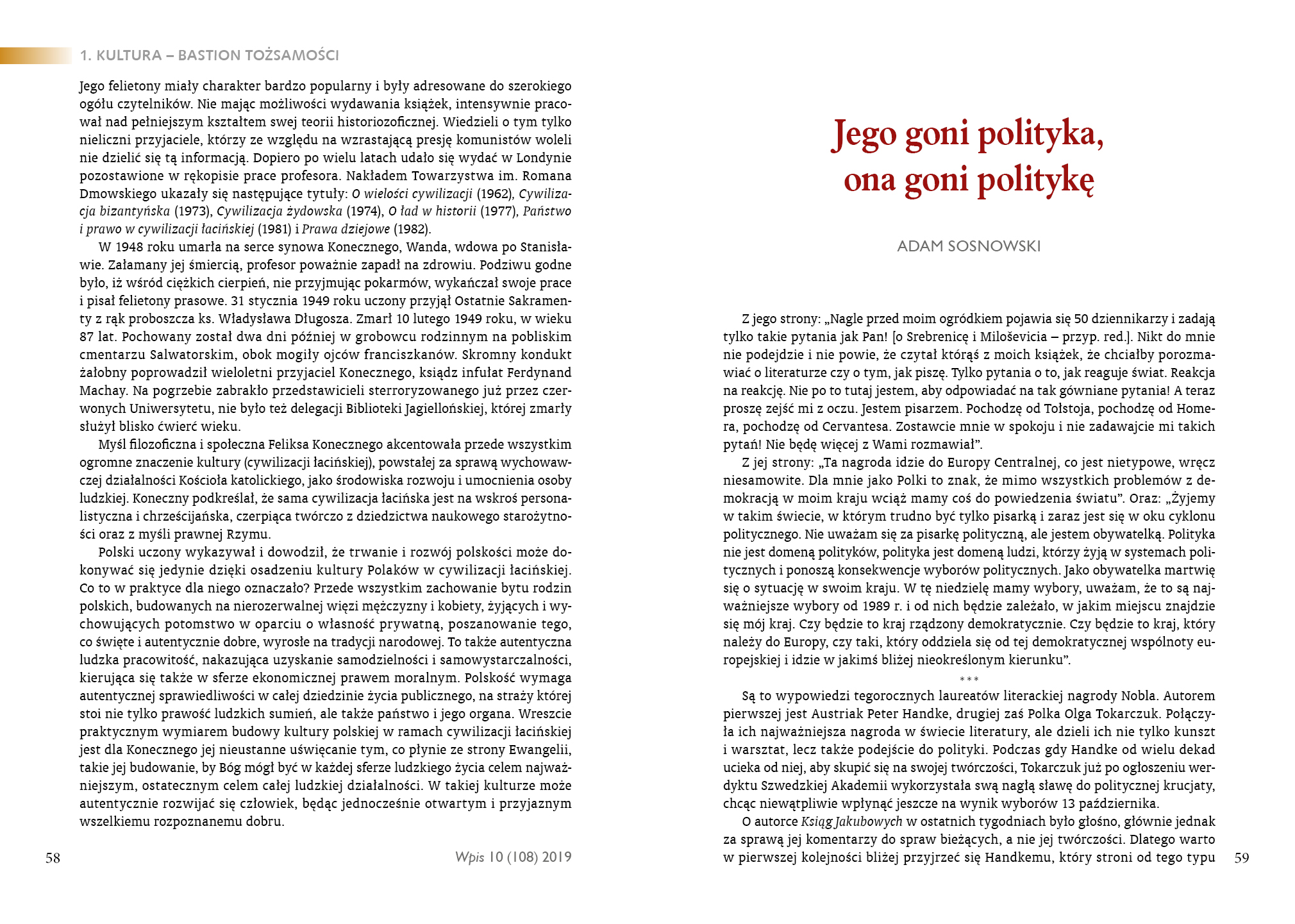 Przyjęła polską tożsamość do końca – bo taka jest moc polskiej kultury, głęboko osadzonej w wierze. Ona ukochała ją, jak tylu innych, którzy przyszli do polskości z różnych stron świata – przyszli przez kulturę właśnie. I to warto sobie uświadomić, żeby zastanowić się nad znaczeniem połączenia tych dwóch słów: imperium kultury. Imperium to łacińskie słowo, oznaczające szczególny rodzaj władzy: to jest wojskowa władza wydawania rozkazów, jednoznacznego podporządkowania, w odróżnieniu od pojęcia zwyczajnej władzy politycznej: potestas oraz władzy autorytetu: auctoritas.