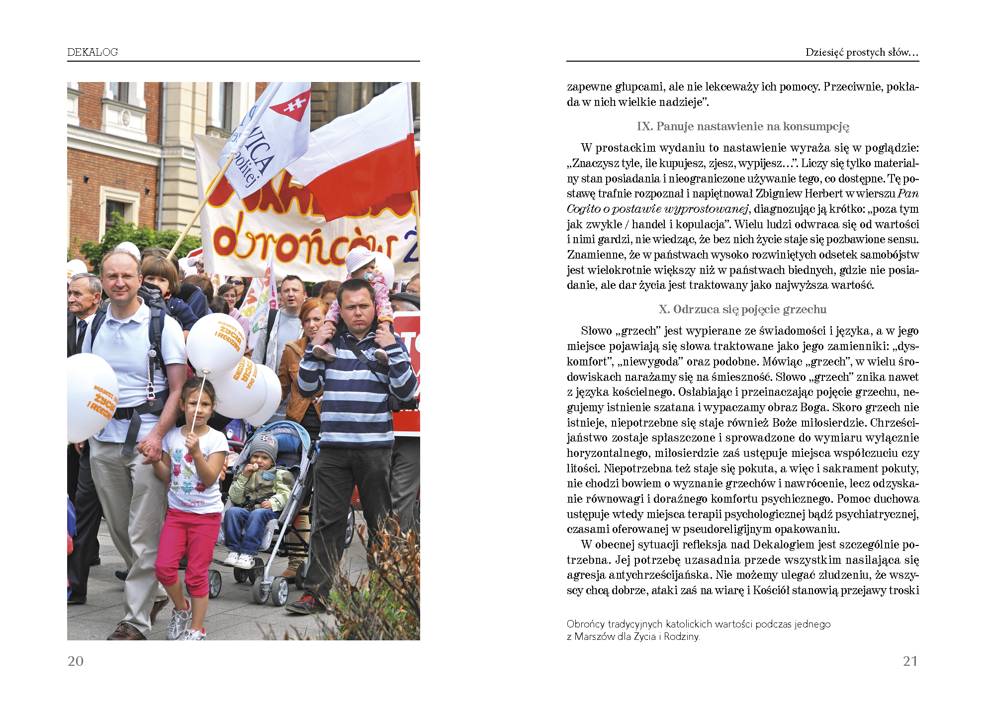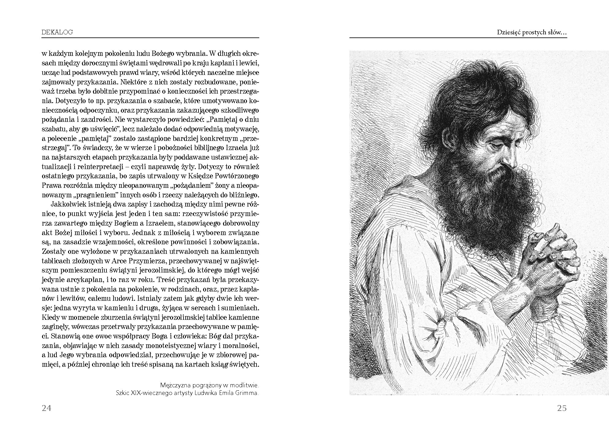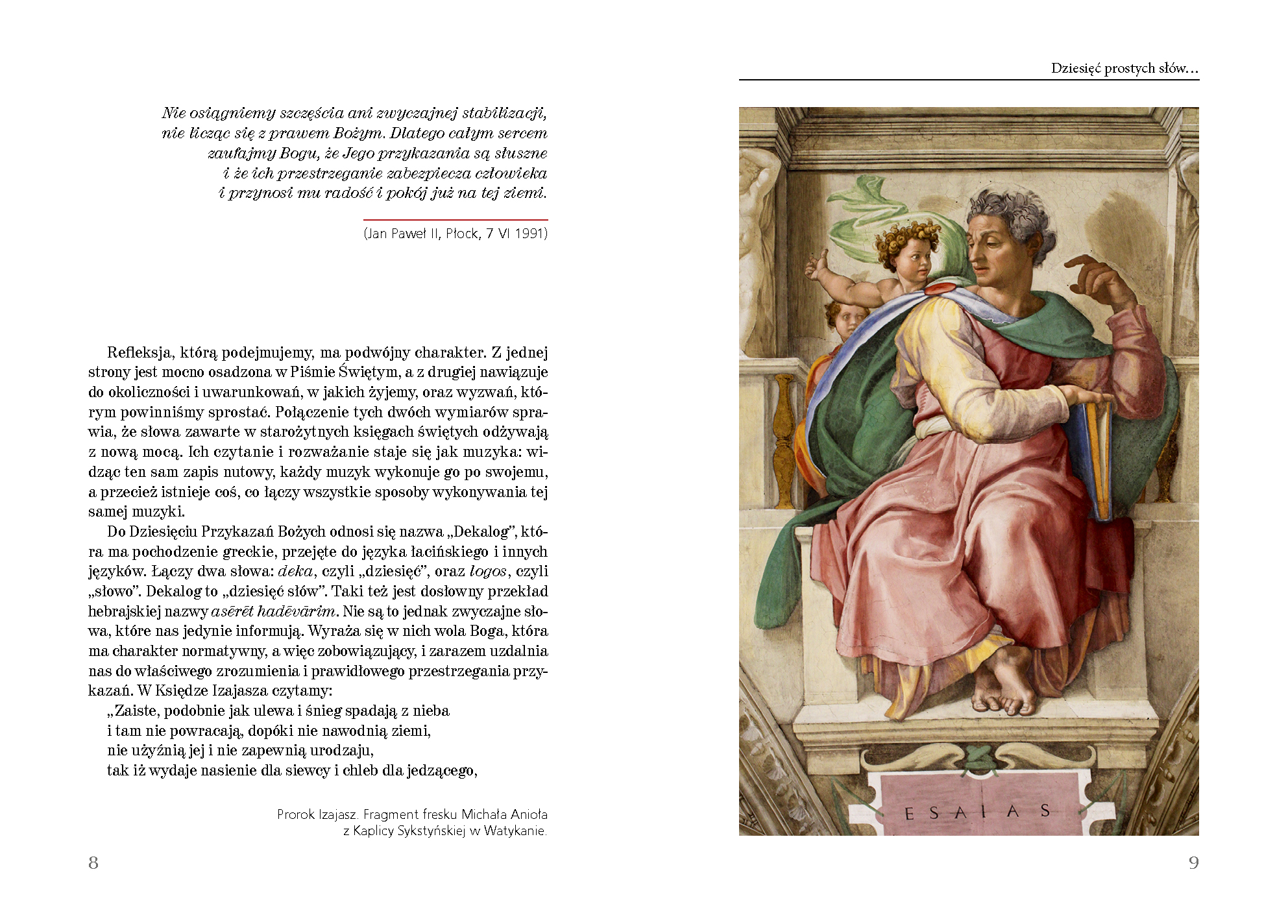 Wtych słowach, które Bóg skierował bezpośrednio do człowieka, skryta jest mądrość głęboka i uniwersalna. W obliczu mnogości praw i lawiny ustaw Dekalog przypomina nam o tym, że wystarczałoby żyć według Bożych przykazań, aby człowiek był bezpieczny i spełniony. Odkąd Bóg przekazał Mojżeszowi te nakazy na kamiennych tablicach, nie powstało już żadne lepsze prawo. Żadna konstytucja nie może się mierzyć z Boską mądrością zawartą w tych zwięzłych poleceniach. Dlatego też jest to książka niezwykle aktualna. Jest to niezbędna lektura na każdy czas i dla każdego z nas.