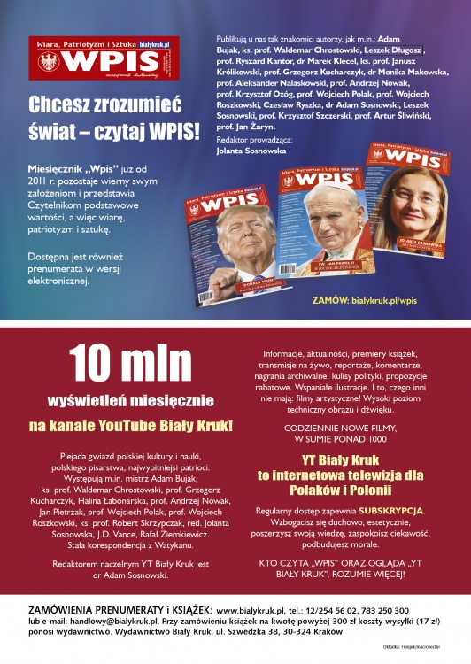 Każdy miesiąc to inny obraz, ale i inny cytat z genialnego poematu Adama Mickiewicza, cenzurowanego dzisiaj i rugowanego ze szkół. Warto mieć go na ścianie, by pamiętać, na przekór tym wszystkim, którzy dzisiaj chcą zniszczyć Polskę.