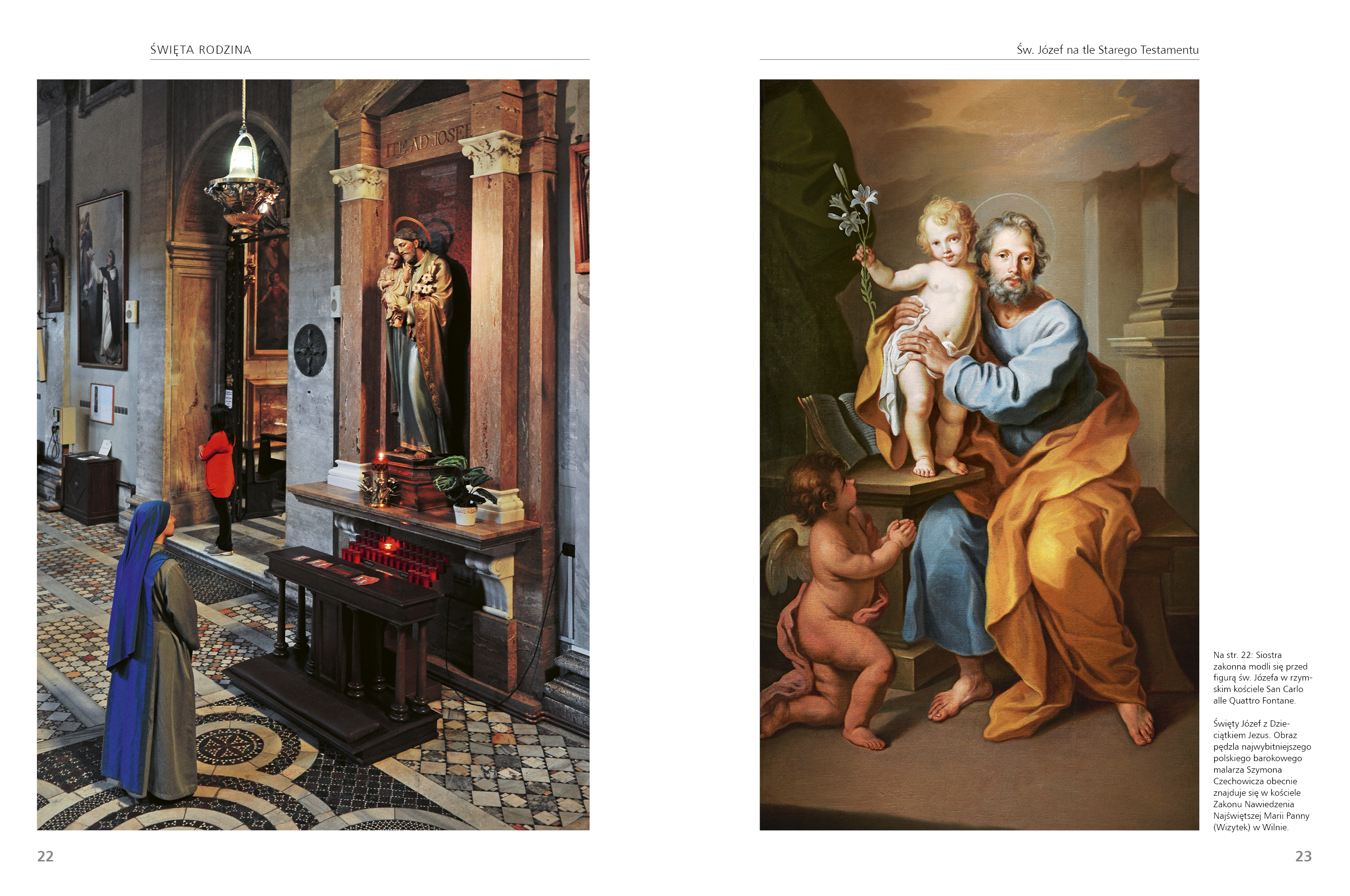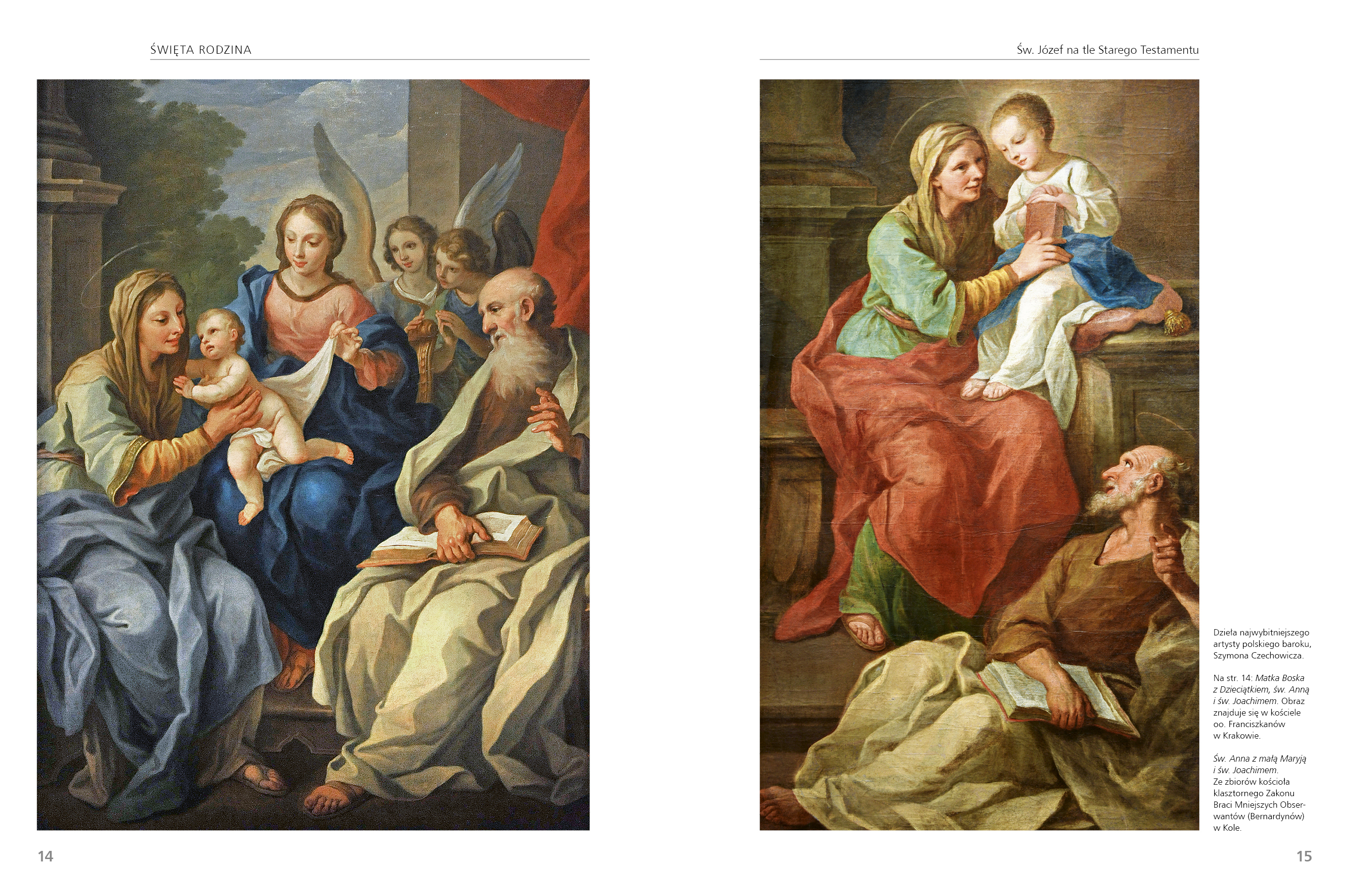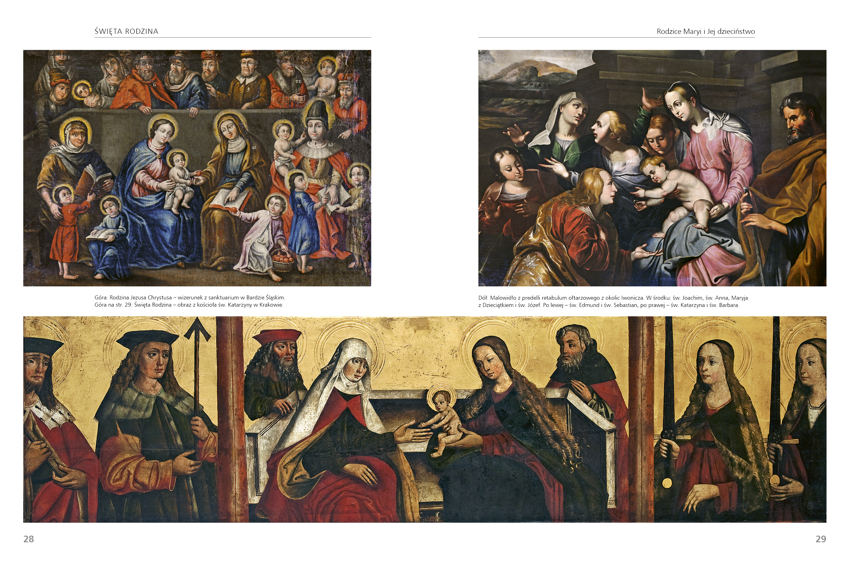 Dla kultury i sztuki nie było w historii ludzkości większej inspiracji niż chrześcijaństwo. W sposób szczególny odnosi się to do wizerunku Świętej Rodziny. Dlatego w książce tej znalazły się m.in. piękne obrazy i rzeźby przedstawiające epizody z Ich życia. Szczególny nacisk położony został na polskie dzieła, prawdziwe skarby, jednak często zapomniane; odkrywa je i utrwala mistrz fotografii sakralnej Adam Bujak. Wśród bogactwa motywów odnajdujemy rodzinę Maryi, Jej przyjście na świat oraz ofiarowanie w świątyni, zaręczyny z Józefem, Zwiastowanie, narodziny Jezusa, ucieczkę do Egiptu, dzieciństwo Jezusa czy śmierć św. Józefa. Podziwiamy dzieła zarówno z najważniejszych polskich ośrodków kultury – Krakowa, Warszawy, Poznania, Gdańska czy Torunia, jak i te z mniej znanych miejsc, jak choćby z Brzozowa, Czchowa, Libiąża, Łapczycy, Bolesławca, Chorzelowa, Nowego Korczyna, Tarnobrzega czy Skrzatusza.