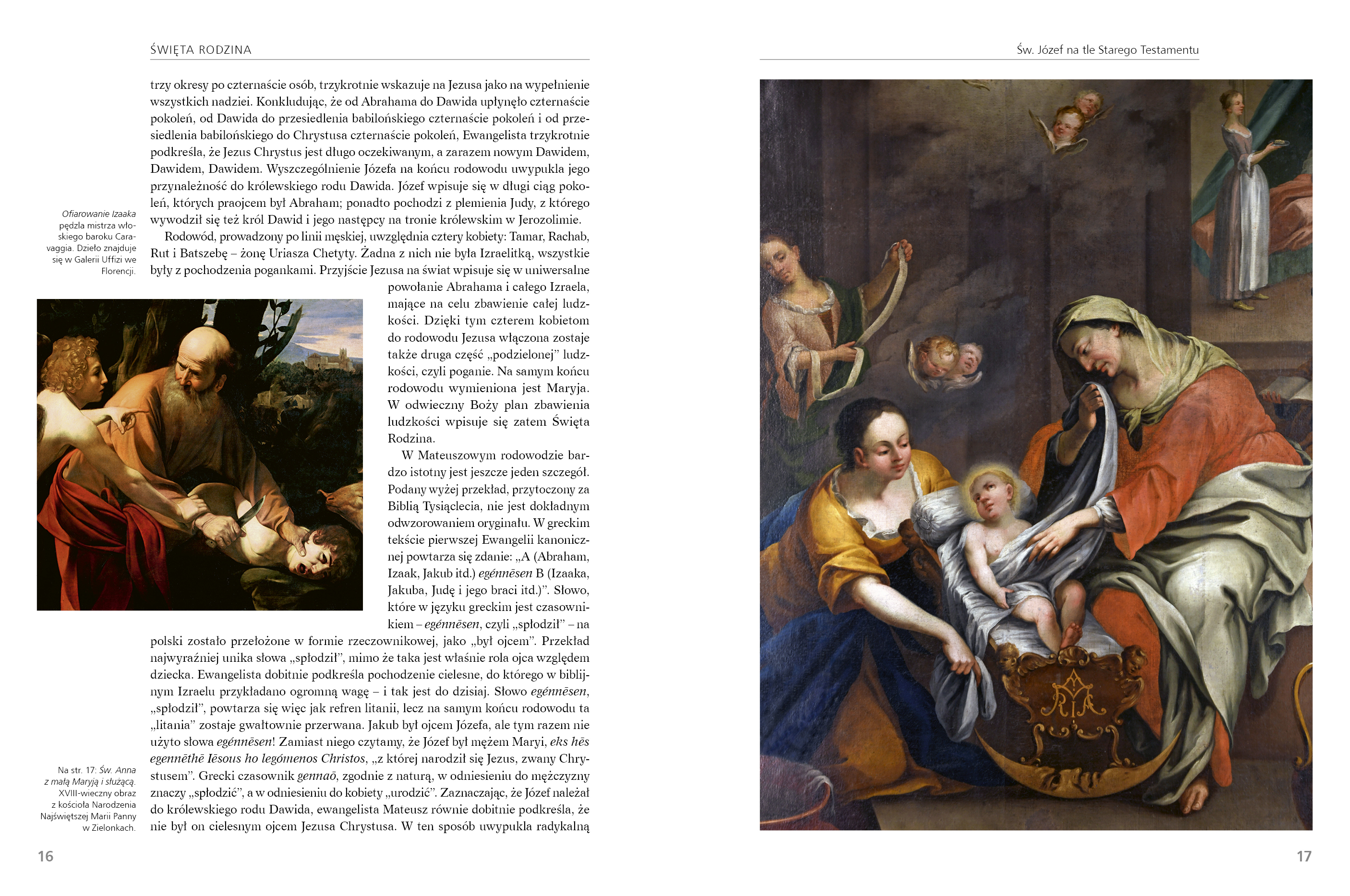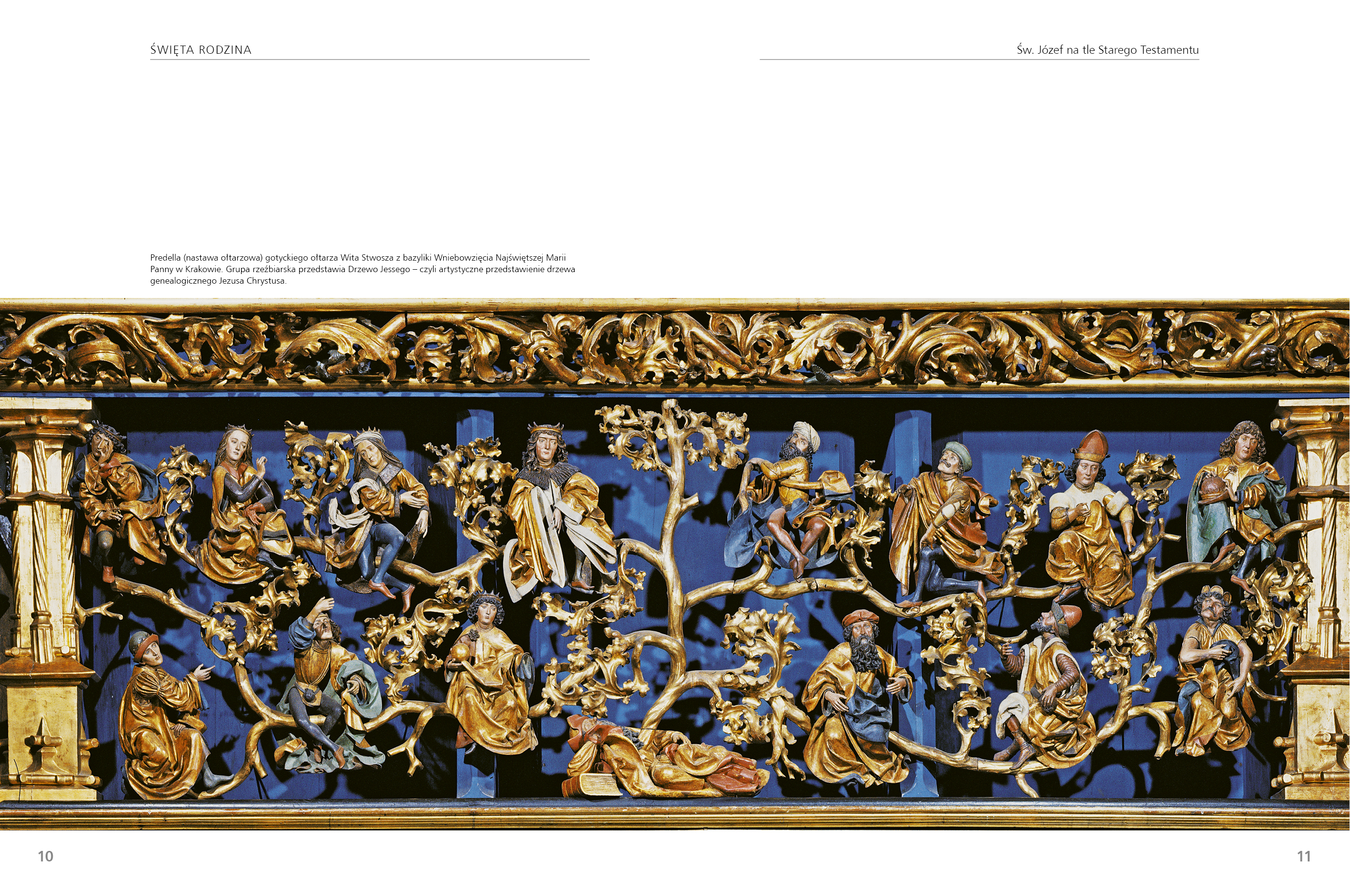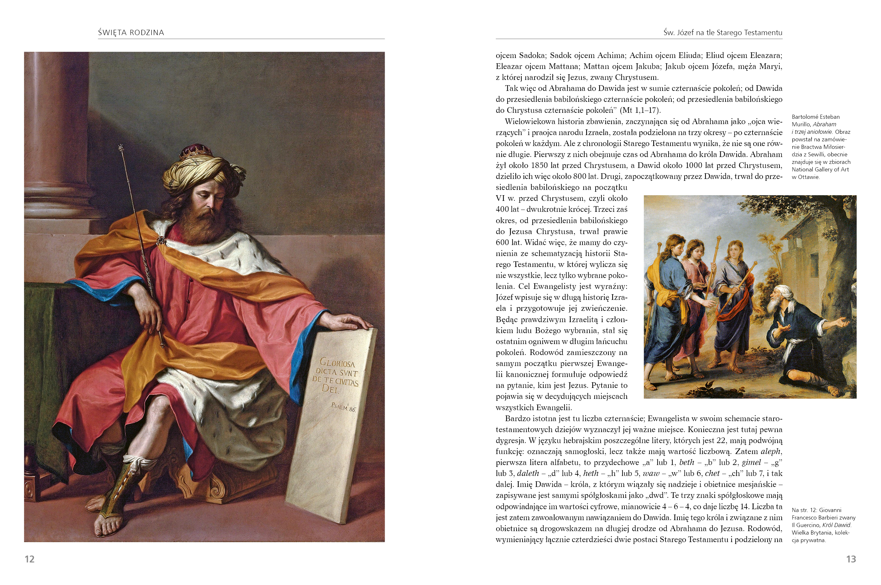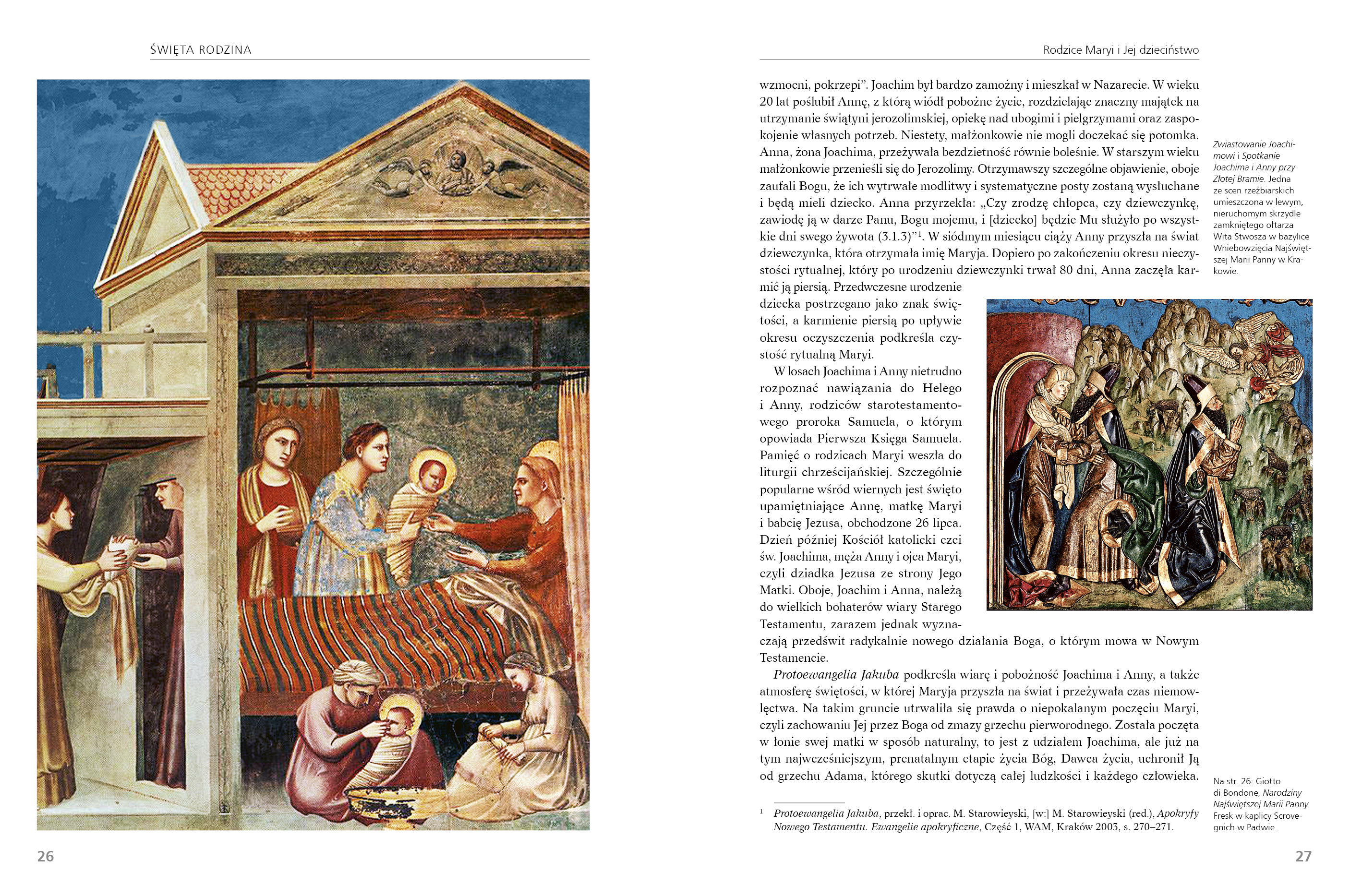 Dla kultury i sztuki nie było w historii ludzkości większej inspiracji niż chrześcijaństwo. W sposób szczególny odnosi się to do wizerunku Świętej Rodziny. Dlatego w książce tej znalazły się m.in. piękne obrazy i rzeźby przedstawiające epizody z Ich życia. Szczególny nacisk położony został na polskie dzieła, prawdziwe skarby, jednak często zapomniane; odkrywa je i utrwala mistrz fotografii sakralnej Adam Bujak. Wśród bogactwa motywów odnajdujemy rodzinę Maryi, Jej przyjście na świat oraz ofiarowanie w świątyni, zaręczyny z Józefem, Zwiastowanie, narodziny Jezusa, ucieczkę do Egiptu, dzieciństwo Jezusa czy śmierć św. Józefa. Podziwiamy dzieła zarówno z najważniejszych polskich ośrodków kultury – Krakowa, Warszawy, Poznania, Gdańska czy Torunia, jak i te z mniej znanych miejsc, jak choćby z Brzozowa, Czchowa, Libiąża, Łapczycy, Bolesławca, Chorzelowa, Nowego Korczyna, Tarnobrzega czy Skrzatusza.