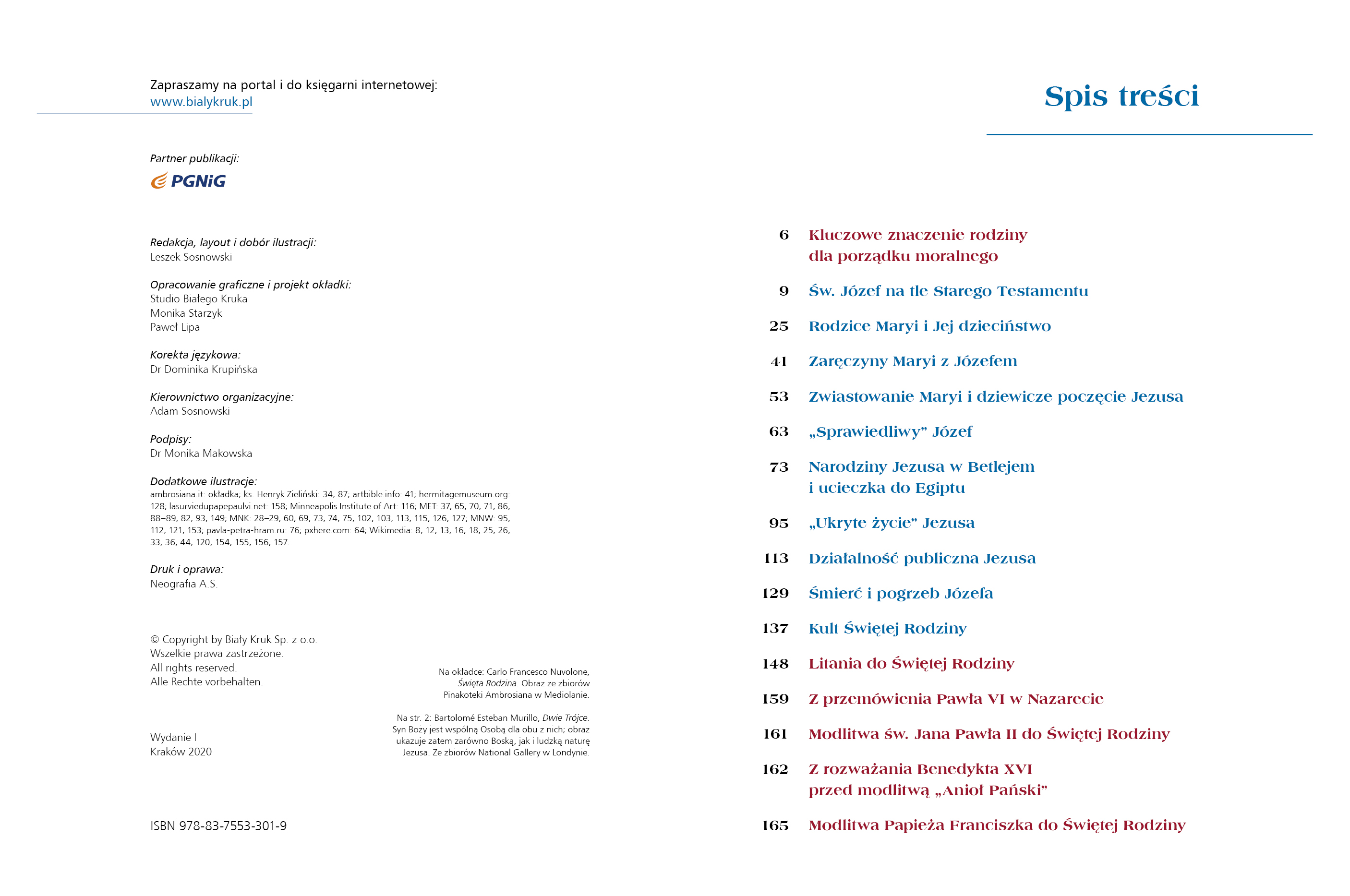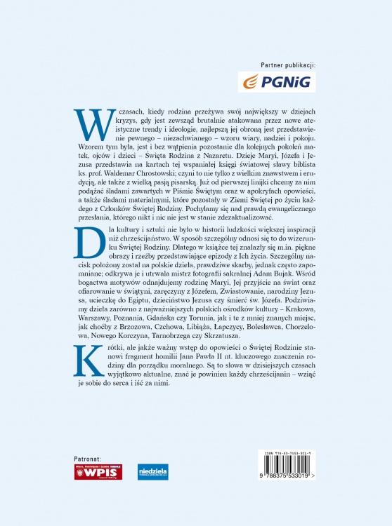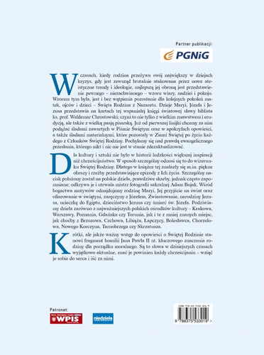 W czasach, kiedy rodzina przeżywa swój największy w dziejach kryzys, gdy jest zewsząd brutalnie atakowana przez nowe ateistyczne trendy i ideologie, najlepszą jej obroną jest przedstawienie pewnego – niezachwianego – wzoru wiary, nadziei i pokoju. Wzorem tym była, jest i bez wątpienia pozostanie dla kolejnych pokoleń matek, ojców i dzieci – Święta Rodzina z Nazaretu. Dzieje Maryi, Józefa i Jezusa przedstawia na kartach tego monumentalnego albumu światowej sławy biblista.