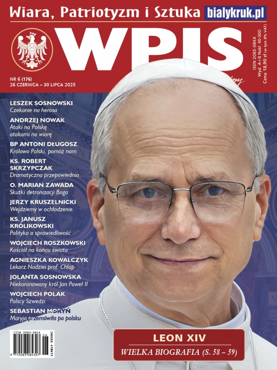 Czerwcowy numer waszego ulubionego miesięcznika już w sprzedaży! Jak każdego miesiąca prezentujemy dla Was na łamach „Wpisu” wyselekcjonowany zbiór felietonów na aktualne tematy, ekskluzywne wywiady ze specjalistami z rozmaitych dziedzin, jak również serię artykułów powiązanych z aktualnymi rocznicami ważnych wydarzeń historycznych. Znakomity publicysta Leszek Sosnowski, komentując wygraną Karola Nawrockiego, podkreśla, że wyzwania stojące przed prezydentem elektem wymagają siły, determinacji i inteligencji prawdziwego herosa, zwłaszcza w dziedzinie mediów, które dziś decydują o każdej dziedzinie życia, a nad Wisłą większość z nich znajduje się niestety w rękach niemieckich. Jeden z ulubieńców czytelników Białego Kruka, wybitny historyk prof. Andrzej Nowak, przekonuje z kolei, że ataki na Polskę były zawsze atakami na wiarę katolicką, nie tylko w czasach I Rzeczypospolitej czy też zaborów. Z kolei ks. prof. Robert Skrzypczak przypomina dzieje pewnego niezwykłego objawienia maryjnego sprzed 400 lat, podczas którego Najświętsza Maria Panna przewidziała... zepsucie moralne, z którym mamy do czynienia w dzisiejszych czasach. Prezentujemy także rozmowę Leszka Sosnowskiego ze znakomitym przyrodnikiem dr. Kruszelnickim, który wyjaśnia, o co tak naprawdę chodzi z tym szaleństwem wokół klimatu, wspominamy też zmarłego niedawno wybitnego lekarza prof. Zbigniewa Chłapa; tekst poświęciła mu dr Agnieszka Kowalczyk. Nie brakuje także wspomnienia o św. Janie Pawle II – niekoronowanym królu Polski; jako takiego opisuje go Jolanta Sosnowska. Publikujemy także reportaże z przyznania Białemu Krukowi kolejnych nagród i wyróżnień. Czerwcowy „Wpis” to ponad 100 stron wciągającej lektury!