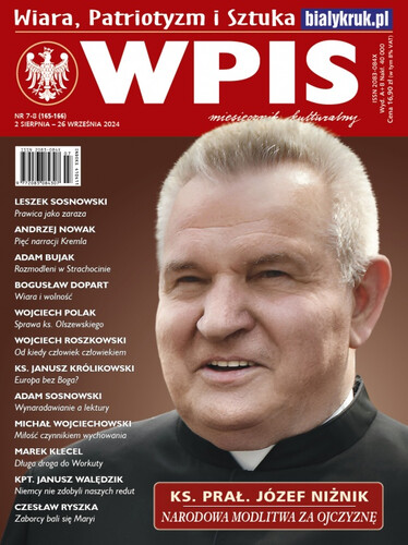 Pojawił się już najnowszy, wakacyjny podwójny numer „Wpisu”. Jak każdego miesiąca przygotowaliśmy dla Państwa wyselekcjonowany zbiór felietonów powiązanych z aktualną tematyką, podobnie jak całą serię artykułów historycznych nawiązujących do bieżących rocznic. W związku z 80. rocznicą wybuchu Powstania Warszawskiego nie mogło zabraknąć wywiadu z Bohaterem heroicznego zrywu – kapitan Janusz Walędzik „Czarny” do walki o wolną Warszawę wyruszył jako 14-letni chłopak; mimo tak młodego wieku walczył z bronią w ręku, został też osobistym łącznikiem... samego rotmistrza Witolda Pileckiego! Dziś aktywnie walczy o pamięć Powstania, odważnie przeciwstawiając się brutalnym atakom lewicujących środowisk na wartości katolickie i narodowe.