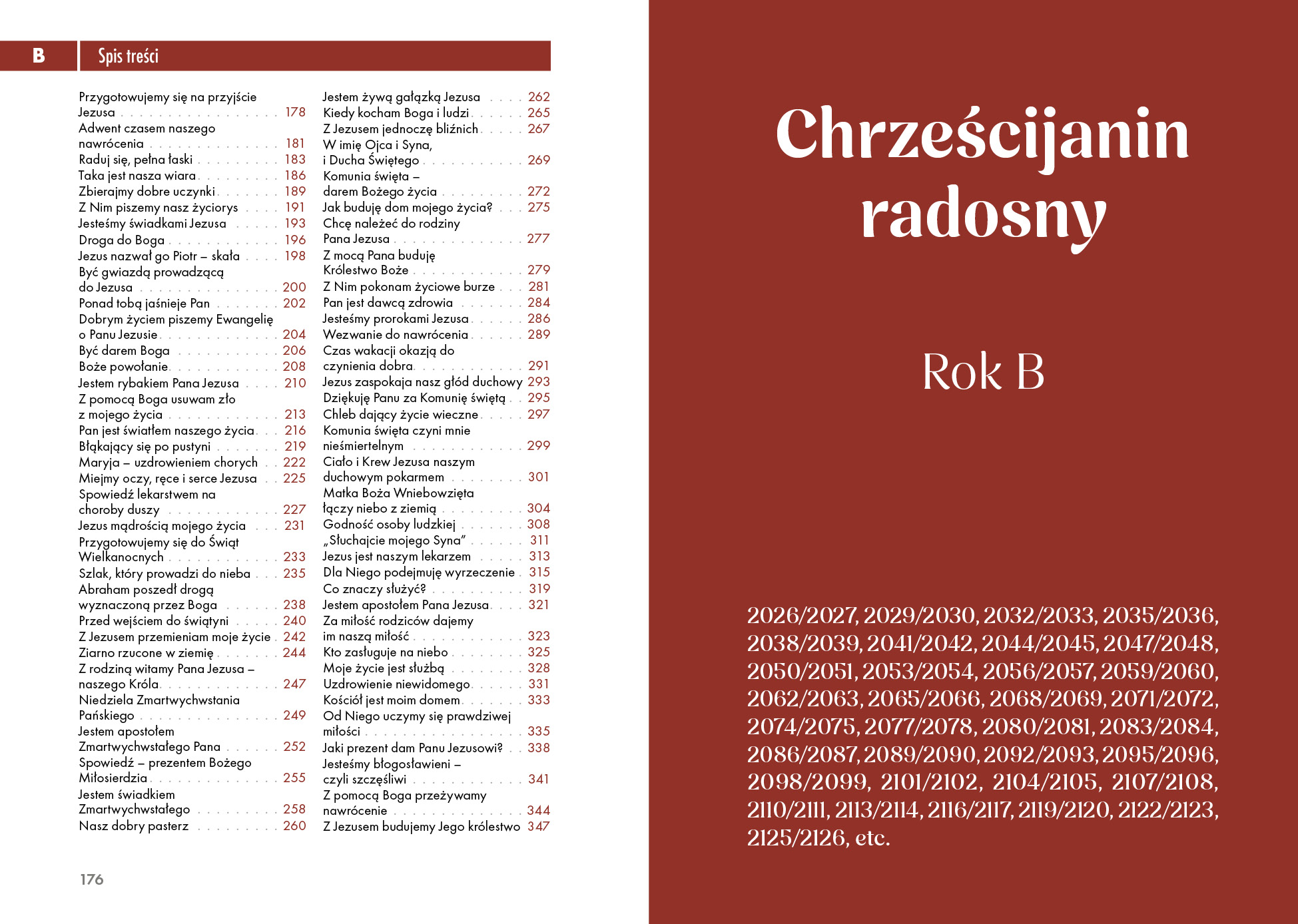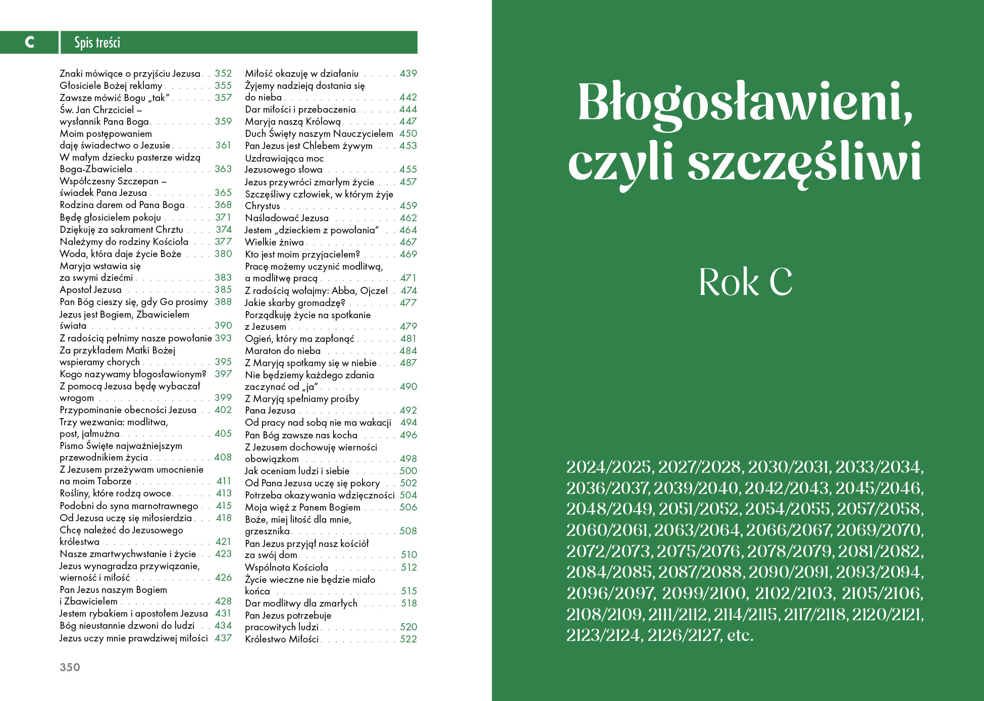 Książka ta jest przeznaczona dla każdej katolickiej rodziny. Stanowi fantastyczny przewodnik po wszystkich niedzielnych czytaniach Ewangelii. Pismo Święte zostało bowiem podzielone na fragmenty w taki sposób, że uczestnicząc w Mszy św. w każdą niedzielę przez trzy lata pod rząd, usłyszymy i poznamy to, co zostało zapisane przez czterech Ewangelistów: Mateusza, Marka, Łukasza i Jana. Kalendarz liturgiczny wyznacza rytm trzyletnich cyklów czytań; nazywają się one Rok A, Rok B i Rok C. Słowo Boże głoszone jest więc według ustalonego porządku. Rok kościelny różni się nieco od roku „świeckiego” przede wszystkim datami jego rozpoczęcia i zakończenia. Pierwszym dniem roku kościelnego jest pierwsza niedziela Adwentu, a ostatnim – sobota poprzedzająca pierwszą niedzielę Adwentu w roku następnym, a nie popularny Sylwester.